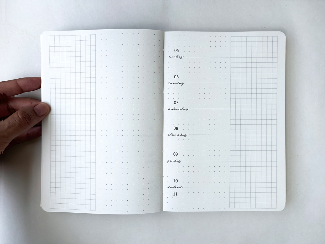 Dot Grid & Square Grid Columns – Subtle structure on every page to adapt to your unique planning style — whether you map, list, or free-flow.